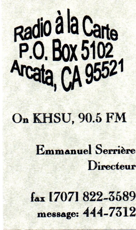 You could read in “France Amérique”, a weekly paper published in San Francisco, that “Radio à la Carte was the 17th French radio program in San Francisco in the past 10 years and the only one who stayed on the air more than a year and a half!”.