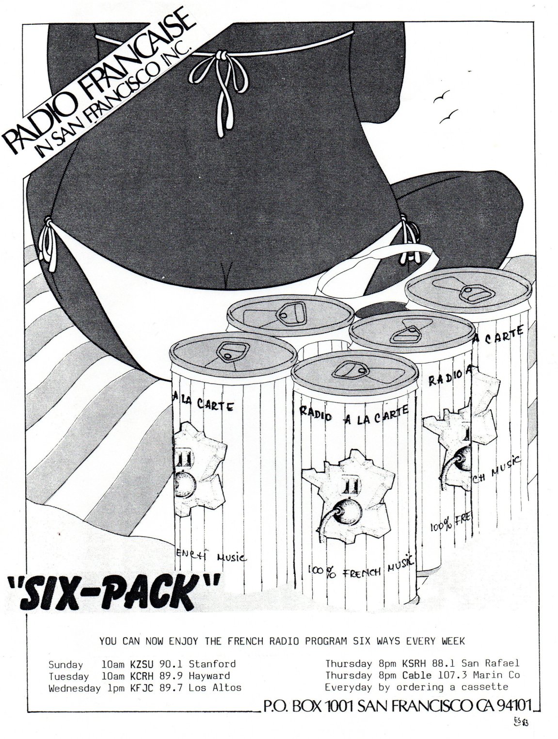 There was already another one-hour radio program produced by Alain Efron on Sundays 6:30PM out of KBRG FM San Francisco (Alain stopped about 3 months after I started mine on KQED). He was playing French rock.