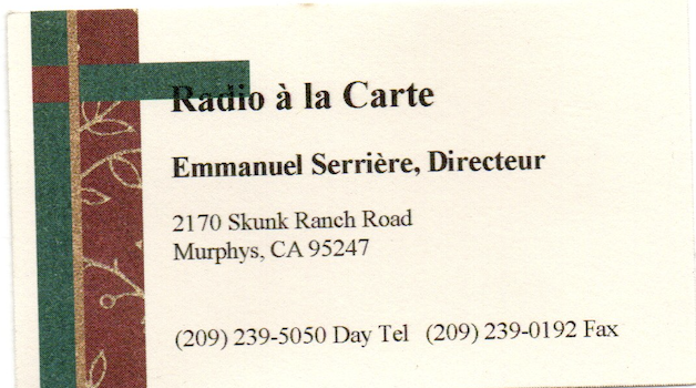 You could read in “France Amérique”, a weekly paper published in San Francisco, that “Radio à la Carte was the 17th French radio program in San Francisco in the past 10 years and the only one who stayed on the air more than a year and a half!”.